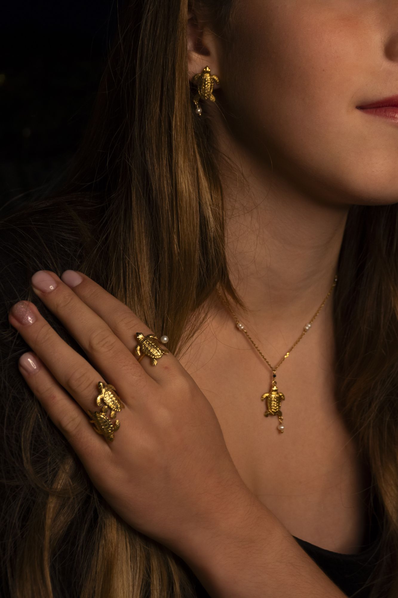 Totes les col.leccions de Sandra Roura estan lligades a la naturalesa, la seva principal font d’inspiració en tot el seu art.la col·lecció Tortuga celebra les tortugues marines, símbols de saviesa i de viatges de creixement personal, que ens ajuden a reconectar amb el meravellós món del medi marí.