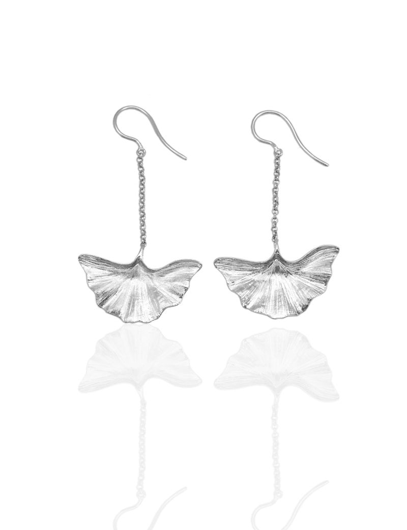 Arracades de plata 925 amb la fulla de l’arbre del Ginkgo Biloba amb cadena