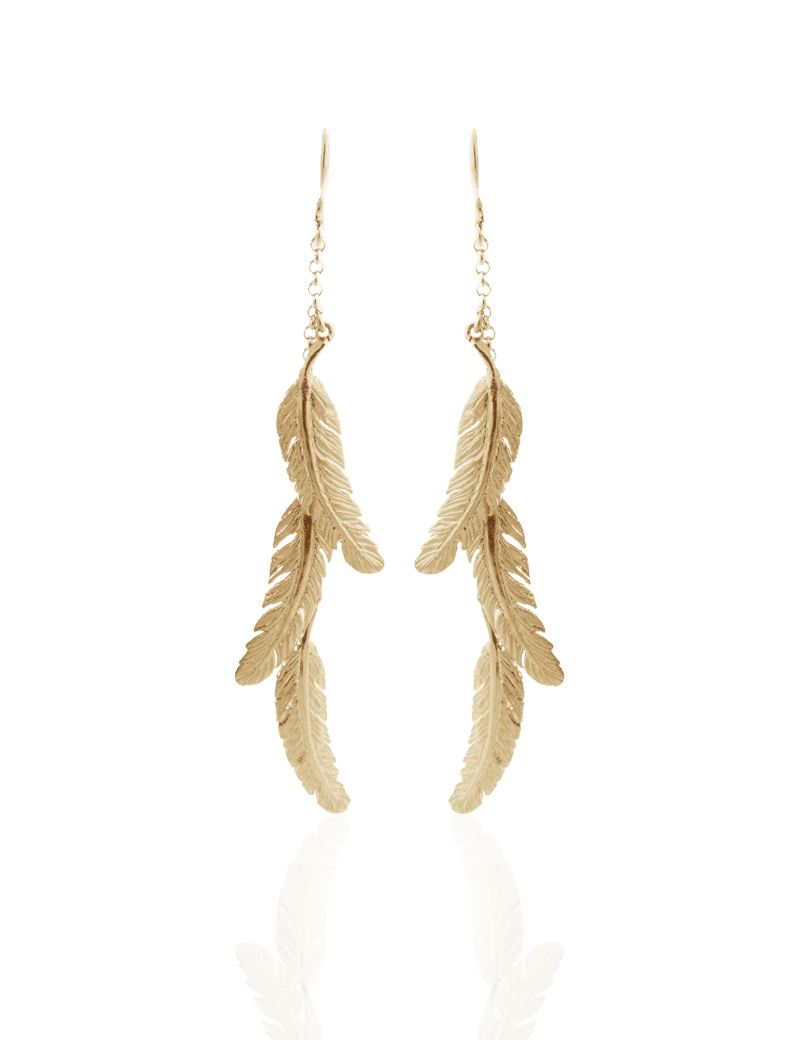 Arracades xapades en or de 18kt. de 8cm de llargada acabades amb tanca de ganxo que li dona moviment a tota l’arracada.