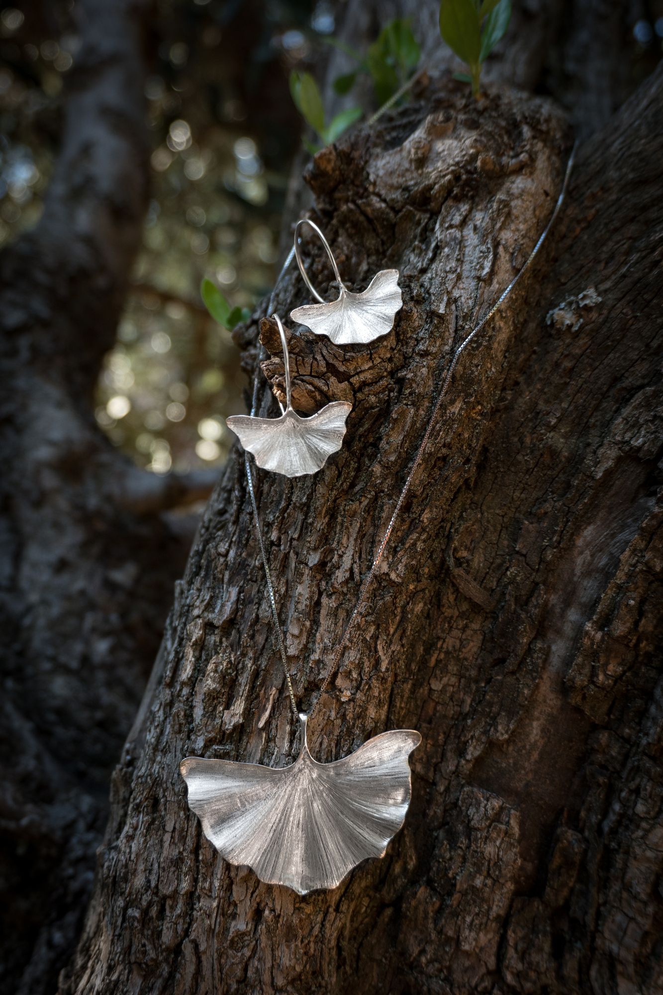 Totes les col.leccions de Sandra Roura estan lligades a la naturalesa, la seva principal font d’inspiració en tot el seu art. Així com no podia ser d’altra manera la col.lecció GINKGO està inspirada en l’arbre que porta aquest nom, El Ginkgo Biloba, que és un arbre sagrat a l’Àsia, símbol de fortalesa i persistència, doncs va ser un dels pocs éssers vius supervivents a la bomba d’Hiroshima. Per això la Sandra va voler guardar tota aquesta energia de l’arbre en aquesta col.lecció i poder transmetre-la a totes les persones que la porten.