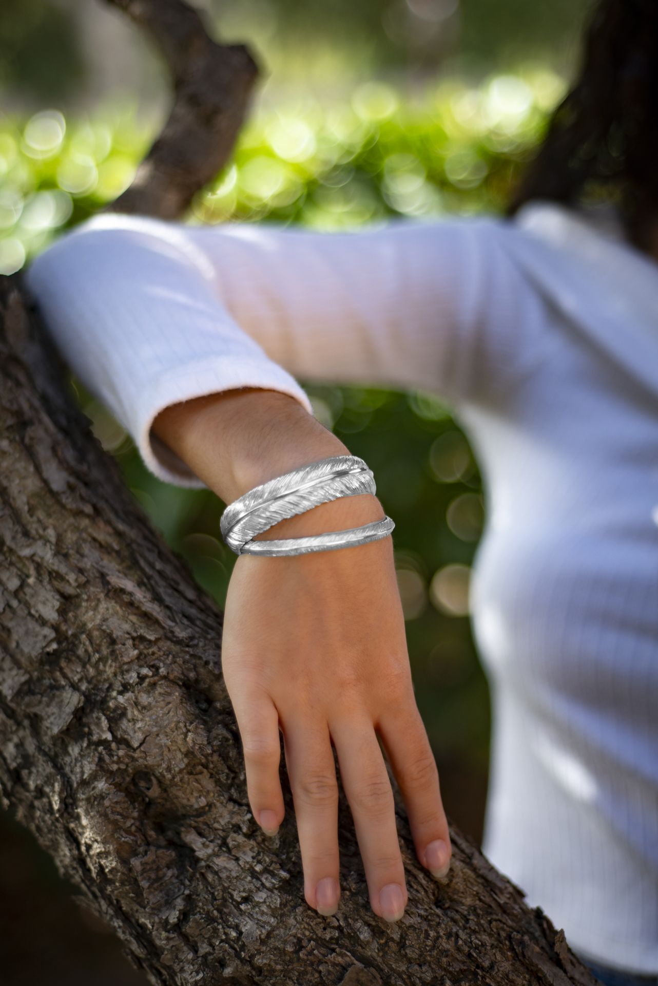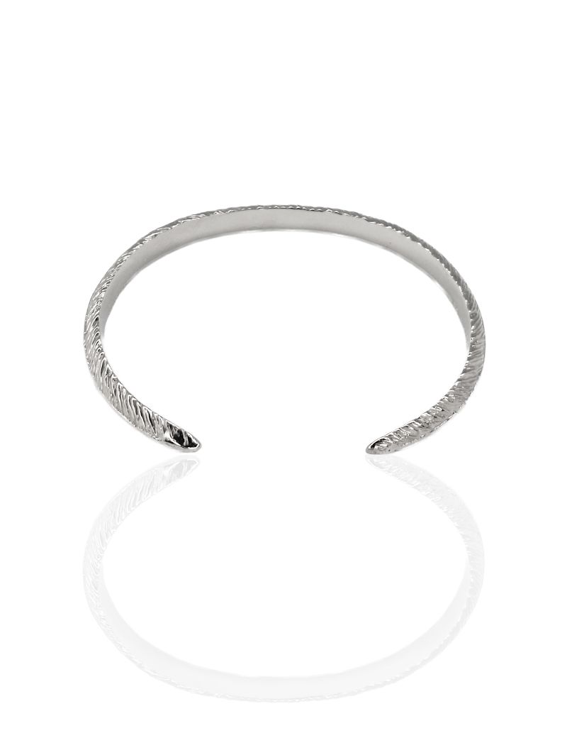 Polsera rígida gran de plata 925 de 0,6 cms d’amplada i 6 cm de diàmetre on es pot escollir entre plata blanca o plata oxidada.